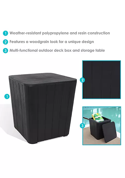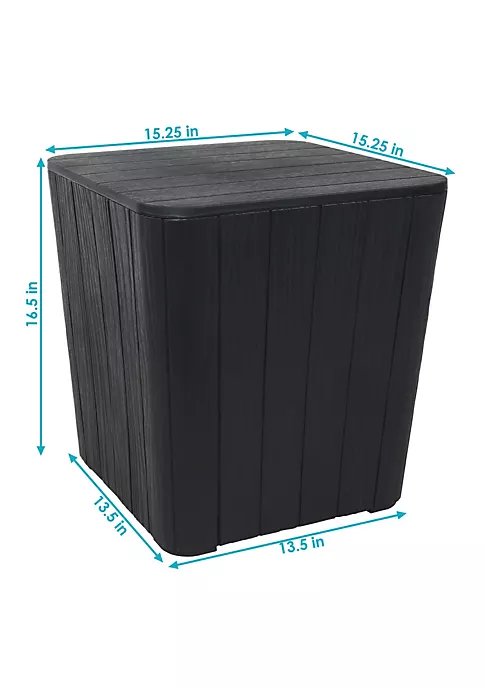 - SIZED TO FUNCTION AS A PATIO SIDE TABLE WITH STORAGE: This patio side table measures 15.25″ square x 16.5″ H and weighs 6 lbs with a 110 lb weight capacity. The interior storage space is 13.5″ square on bottom, 13″ square on top and is 16″ H.