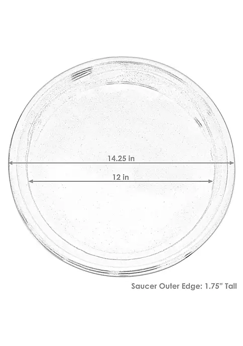 - OVERALL DIMENSIONS: 14.25-inch outer diameter (12-inch inner diameter) x 1.75-inch tall outer edge (1.5-inch tall inner edge); 6.6 pounds per saucer