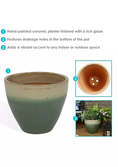 - OVERALL DIMENSIONS: 13.5 inches outer top diameter (12.25 inches inner diameter); 7.5 inches outer base diameter (6.25 inches inner base diameter) x 12 inches tall (11 inches tall inner); weighs 19 pounds; (3) 1 inch drainage holes; Soil capacity: 13.2 quarts/3.3 gallons
