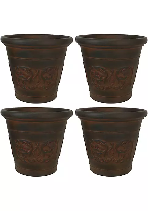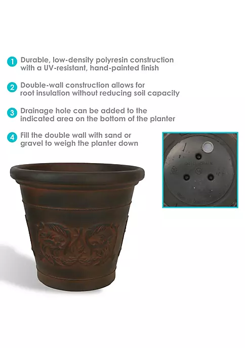 Outlet ❤️ 13 in Laurel Dual-Wall Polyresin Planter and UV-Resistance – Rust by Sunnydaze Decor ❤️