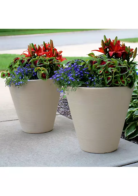 New 👏 16 in Elizabeth Ribbed Urn Polyresin Planter – Beige – Set of 2 by Sunnydaze Decor ✔️