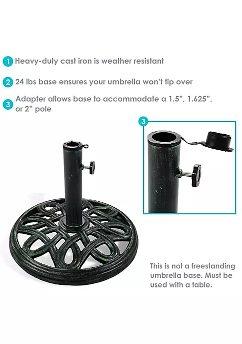 - OVERALL SIZE: Deck umbrella base is 17 inch diameter x 12 inches tall; 24 pound weight making this base sturdy and heavy-duty