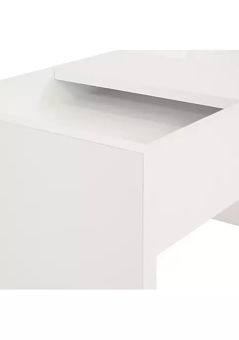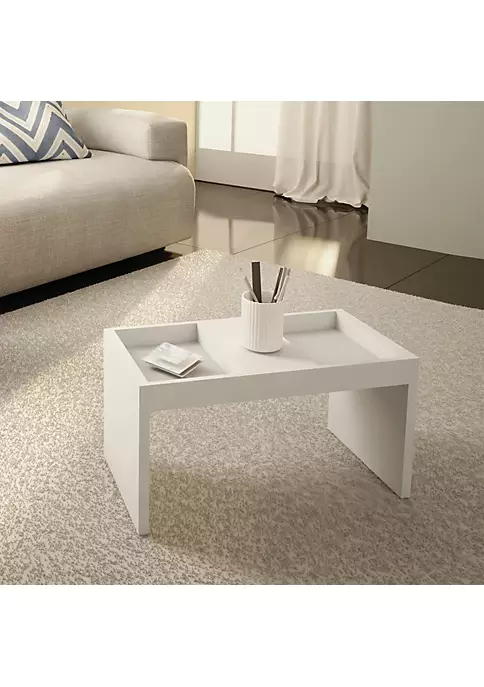 - MULTI-USE TABLE: When used as a lap table for bed, this table measures 26.75″ W x 14.5″ D x 15.25″ H and weighs 19 lbs. The tabletop can support up to 10 lbs. The center of the table is 7.5″ W x 14.25″ D with two 8.75″ W x 13″ D x 2.25″ H indents on either side. If set on one leg to be used as an end table, the table measures 14.25″ W x 15.25″ D x 27″ H and can support 5 lbs. The shelf measures 13″ W x 2.25″ D x 8.75″ H, and the cubby measures 13″ W x 2.25″ D x 8.75″ H with a 6.75″ H interior.
