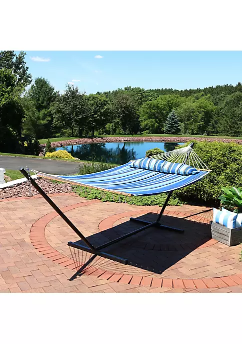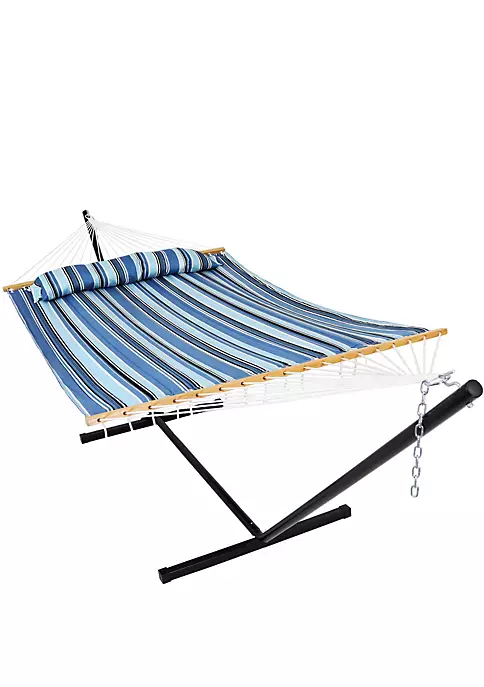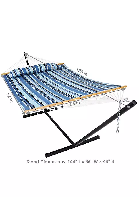 - LARGE SIZE: Double hammock measures 130 inches long from loop to loop x 55 inches wide; Weighs 7.4 pounds; Bed size: 74 inches long x 55 inches wide; Removable pillow: 40 inches long x 10 inches wide x 3.5 inches thick