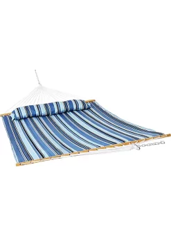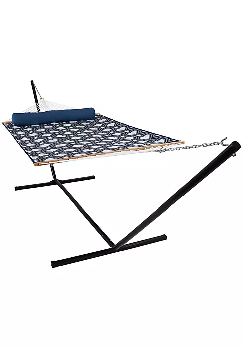 - FITS TWO PEOPLE: Large freestanding hammock measures 130 inches long x 55 inches wide; Extends to 152 inches long with chains and S-hooks; Hammock bed size: 74 x 55 inches; Hammock pillow: 40 x 10 x 6 inches; Weighs 11 pounds