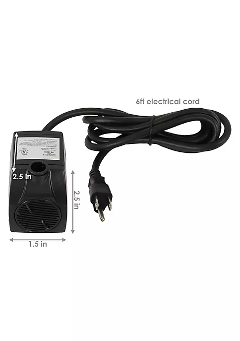 - SPECIFICATIONS: 2.5 inches long x 1.5 inches wide x 2.5 inches high; weighs 2.4 pounds; 200 GPH with up to a 4.3-foot lift; 22-inch cord connects lights to plugin