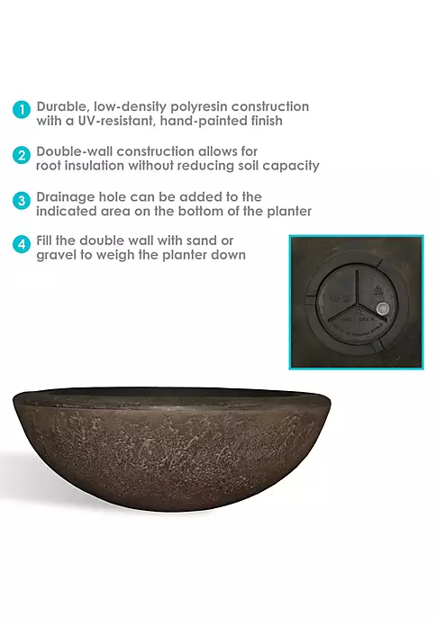 - LARGE SIZE: 21 inches diameter x 7 inches tall; 9.5-inch bottom diameter; Weighs 3.2 pounds per planter; Perfect for both inside and outside use and enhancing your living space with greenery