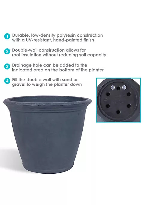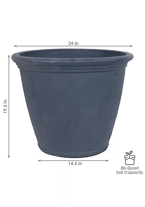 - OVERALL DIMENSIONS: 24 inches diameter x 19 inches tall; 14.5-inch bottom diameter; weighs 6 pounds per planter