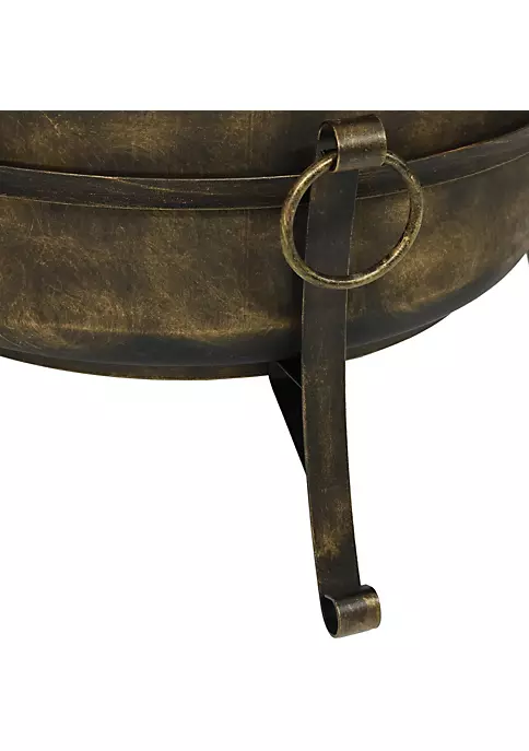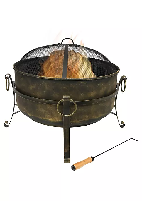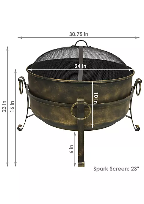 - LARGE SIZE: This steel cauldron fire pit is perfect to have many people around for a bonfire in the patio, yard or garden with an overall 24-inch diameter x 23-inch height, while weighing 20 pounds. The backyard bonfire pit is 16 inches tall without the spark screen, while each of the three legs are 6 inches tall.
