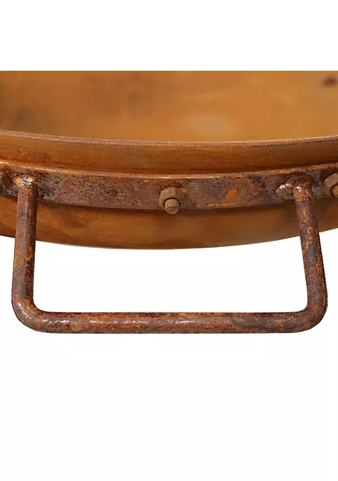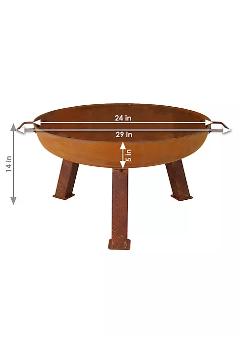 - INTIMATE SIZE: This cast iron dish fire pit measures 14 inches tall x 5 inches deep x 24 inches in diameter and weighs 19 pounds. From handle to handle, the round fire bowl measures 29 inches wide making it the ideal size to create cozy memories around.