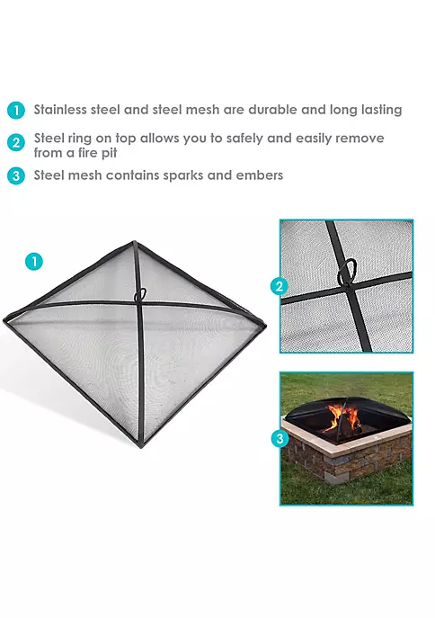 - GREAT FIRE PIT ACCESSORY: Firepit spark screen measures 24 inch square x 5 inches tall; Weighs 3.3 pounds; Makes a great addition to outdoor bonfire