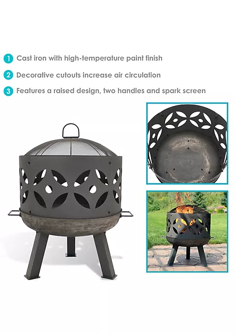 - GREAT FOR BACKYARD: Outside firepit is 26.5 inches diameter x 29.5 inches tall and is 1.75 mm thick; Weighs 27.2 pounds; Spark screen is 21 inches diameter x 5.5 inches tall; Fire bowl is 4.5 inches deep and sits 9 inches above ground