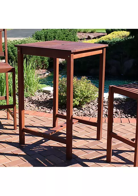 - OVERALL DIMENSIONS: 27.5 inches wide x 27.5 inches deep x 42.25 inches tall; Tabletop thickness: 0.75 inches; Umbrella hole: 1.5-inch diameter; Weighs 33.6 lbs; Weight capacity: 220 lbs