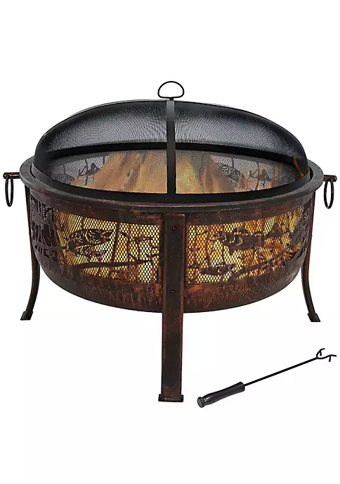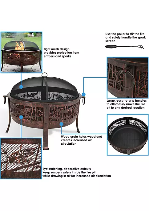 - Fire Pit;Spark Screen;Wood Grate;Poker;Cover