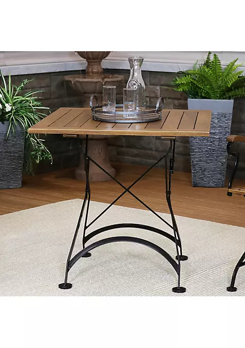 - PERFECT SIZE: 31.5 inches wide x 31.5 inches deep x 30 inches tall; Weighs 38.2 lbs; Weight capacity: 400 lbs; Gather your friends and family around this elegant folding bistro table. It’s the perfect addition for your patio, balcony, living room or kitchen. It’s great for dining, camping or playing cards.