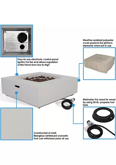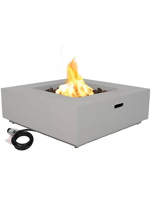 - PERFECT ADDITION TO OUTDOOR LIVING AREAS: Patio fireplace heater measures 34.75 inches square x 12 inches tall; Weighs 78.2 pounds; Fire area is 20.75 inches square x 3.25 inches deep; Burner is 12 inches diameter; Ledge is 7 inches wide