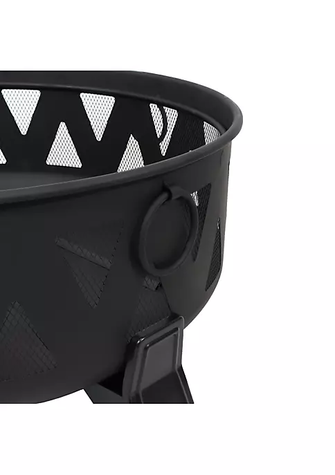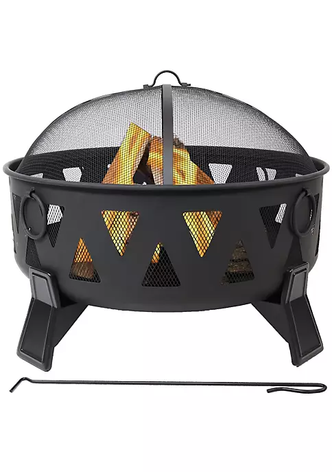 - PERFECT FOR BACKYARD GET TOGETHERS: This fire pit is 34″ diameter x 24″ H (handle up) or 22.5″ H (handle down) and weighs 22 pounds. The fire pit has a 5″ H clearance from the ground to the bottom of the fire bowl. The handles on the sides are 4″ diameter. The bowl has a 31″ overall diameter x 26.75″ diameter at the bottom and is 11″ H. The spark screen is 29.5″ diameter and the fire poker is 27″ L. The fire pit without the spark screen is 16″ H.