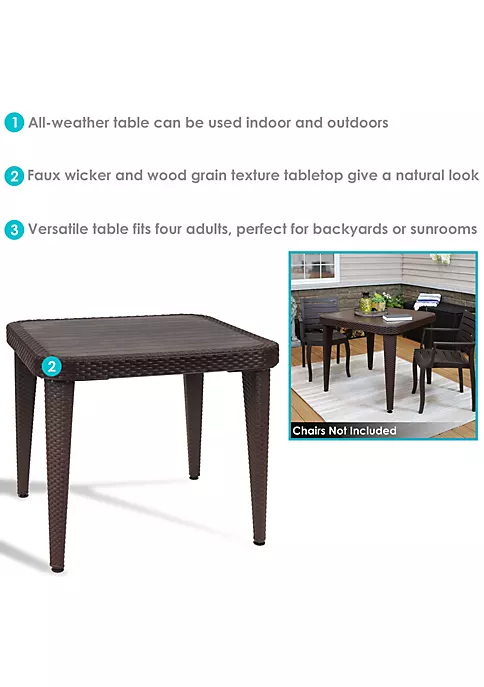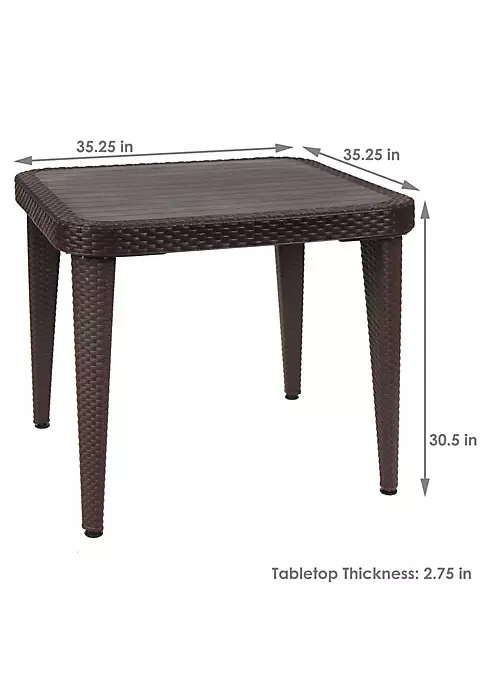- PERFECT SIZE: 35.25 inches wide x 35.25 inches deep x 30.5 inches tall; Weighs 26.4 pounds; Weight capacity: 551 pounds; Tabletop: 2.75 inches thick; This spacious patio table provides enough room for up to four people to comfortably sit around (chairs not included)