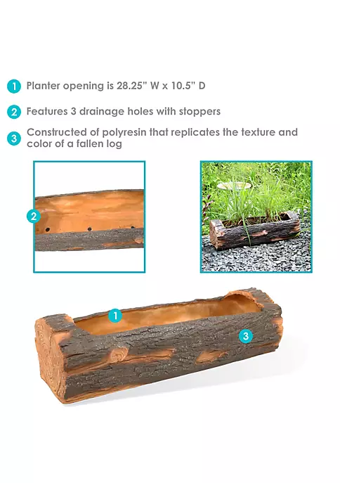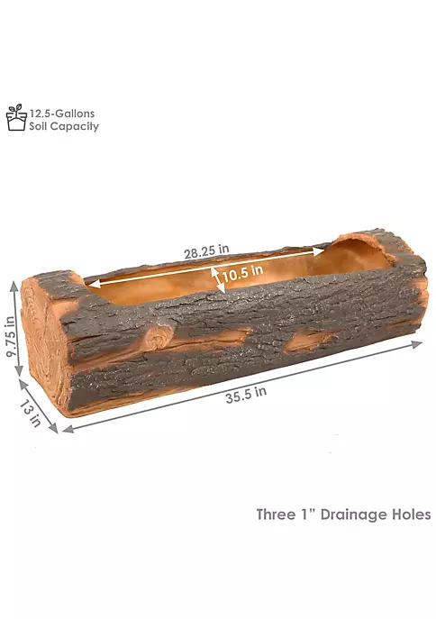 - FITS PERFECTLY IN GARDEN: 35.5 inches wide x 13 inches deep x 9.75 inches tall; Weighs 18.4 pounds; Interior of planter is 34 inches wide x 10 inches deep x 8.5 inches tall; Planter opening is 28.25 inches wide x 10.5 inches tall; Features 3 drainage holes that are 1 inch diameter; Drainage holes include stoppers; Enhance the exterior of your house by placing this standing planter in your favorite outdoor living space to enhance the atmosphere with greenery and woodland charm
