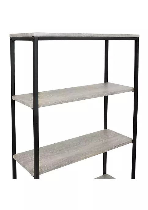- IDEAL VERTICAL STORAGE: 22.75 inches wide x 9.5 inches deep x 69 inches tall; Weighs 18 pounds; 80-pound total weight capacity; 20-pound weight capacity per shelf; Bottom three shelves are 23.25 inches wide x 8 inches deep x 0.5 inches thick; Top shelf is 23.5 inches wide x 9.5 inches deep x 0.5 inches thick; 10.75 inches of clearance between shelves; Ground to bottom shelf clearance is 33.75 inches tall