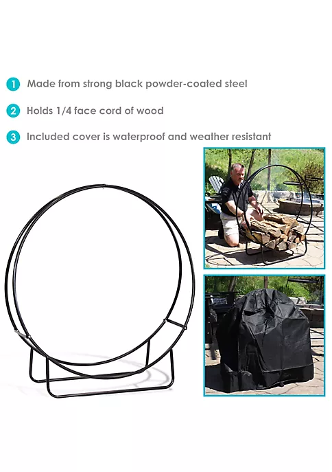 - 3.5-FOOT LOG HOLDER WITH COVER KIT: 40 inch diameter x 15 inch deep, weighs 13 pounds. The included cover is 40 inch long x 24 inch wide x 41 inch tall.