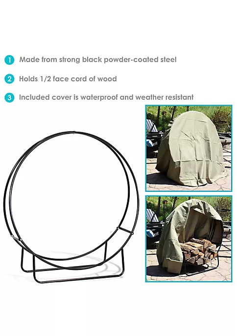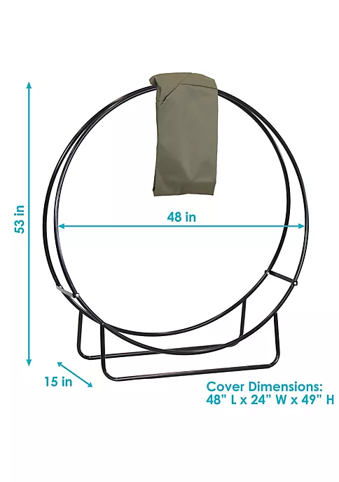 - 4-FOOT LOG HOLDER WITH COVER KIT: 48-inch diameter x 15-inch deep x 53-inch high, weighs 18 pounds. The included cover is 48-inch long x 24-inch wide x 49-inch high