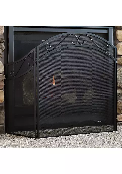 - UNIVERSAL HEAVY-DUTY FIREPLACE SCREEN: Decorative fireplace cover measures 50″ L x 0.25″ D x 30.5″ H, and weighs 11.2 lbs. The side panels measure 12.25″ W x 0.25″ D x 26″ H. The middle panel measures 26″ W x 0.25″ D x 30.5″ H.