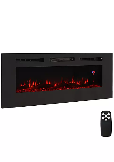 - STYLISH WALL FIREPLACE: This electric fireplace measures 50″ W x 5″ D x 18.75″ H and weighs 46.8 lbs. The insert measures 40.75″ W x 4.75″ D x 17.75″ H. The overall BTU output is 5,100 BTUs. The heat settings are 750 W (Low) – 1,500 W (High). It requires 12.5 amps and has 110 volts. The cord length is 67″. It provides cozy supplemental heating for up to 400 square feet.