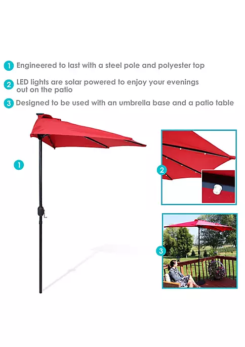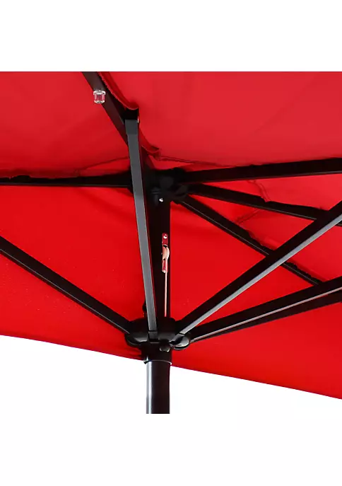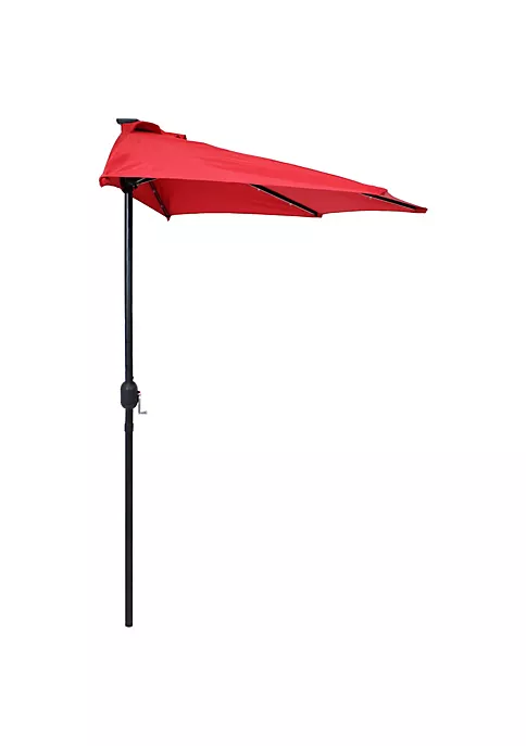 - 9-FOOT HALF ROUND MARKET PATIO UMBRELLA: This umbrella measures 106″ W x 58″ D x 95.5″ H and weighs 10 lbs. The ground to crank measurement is 44.25″ H.