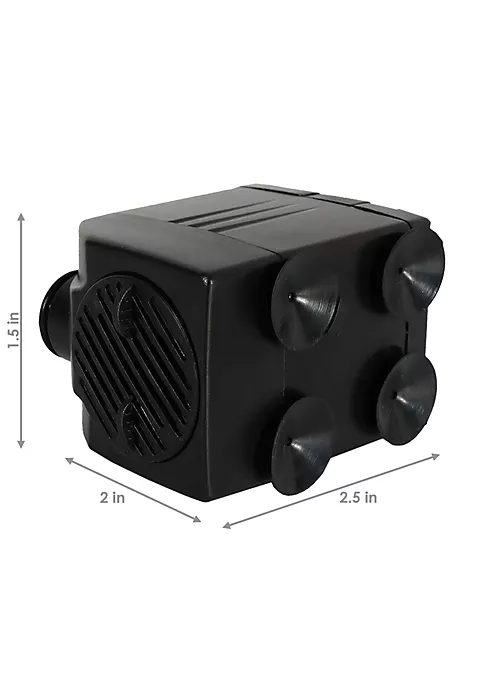 - SPECIFICATIONS: 2.5 inches long x 1.5 inches wide x 2 inches high; 93 GPH with a 2.5-foot lift; 3-prong plug-in