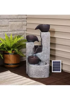 - IDEAL FOR LAWN OR PATIO: Solar powered water fountain is 14.75″ W x 14″ D x 29.75″ H and weighs 18.6 pounds. The solar panel is 6″ W x 2″ D x 7.5″ H and the pump has a 0.25″ hose diameter; Recommended water capacity of 2.5 gallons. The cord for the pump is 196″ L and the cord for the LED light is 185″ L. This backyard water feature is a great addition to the home or garden.