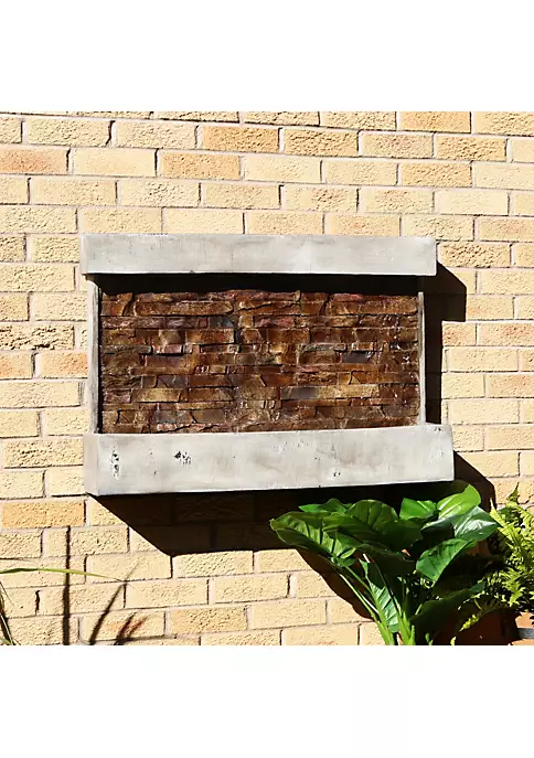 - DIMENSIONS: Wall water fountain measures 33.5 inches long x 4 inches wide x 24 inches tall and weighs 33.5 pounds, giving you the flexibility to hang this waterfall feature inside or outside on the patio, deck, or porch; Recommended water capacity of 3 gallons
