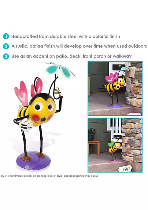 - RUSTIC METAL ART: Each cute garden accent measures 11.75″ W x 16″ D x 21″ H and weighs 2.2 lbs. Each statue has a 7.5″ diameter base. This whimsical metal figure is lightweight and easy to move and place.