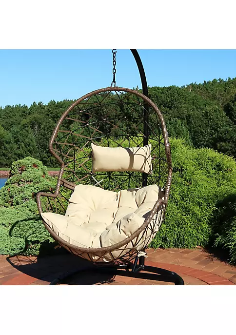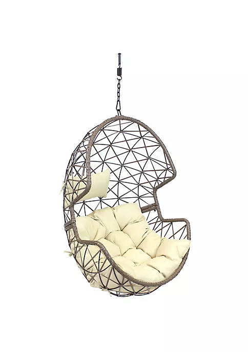 - STYLISH EGG CHAIR: Egg shaped lounge chair measures 35 inches wide x 31 inches deep x 52 inches tall; weighs 23 pounds; Seat cushion: 36 inches deep x 34.5 inches wide x 6 inches thick; Weight capacity: 265 pounds; This sturdy chair provides a comfortable seat for 1 person; Product includes 1 egg chair, 1 seat cushion, 1 headrest cushion, 1 chain and 1 carabiner