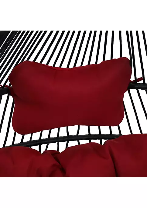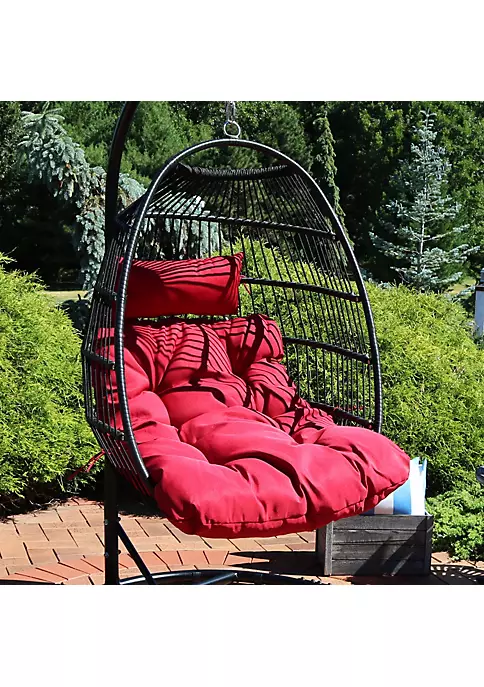 - RELAXING CLASSIC EGG CHAIR: Overall dimensions: 33 inches W x 32 inches D x 44.5 inches H; Flattened dimensions: 46 inches L x 33 inches W x 10 inches tall; Seat: 25 inches W x 21 inches D; Chain: 9 inches long; Cushion: 27 inches W x 43 inches deep x 6.5 inches thick; Headrest: 15 inches W x 10 inches H x 4.5 inches thick; Weighs 24 pounds; Weight capacity: 330 pounds; This cozy egg chair provides a comfortable seating for 1 person