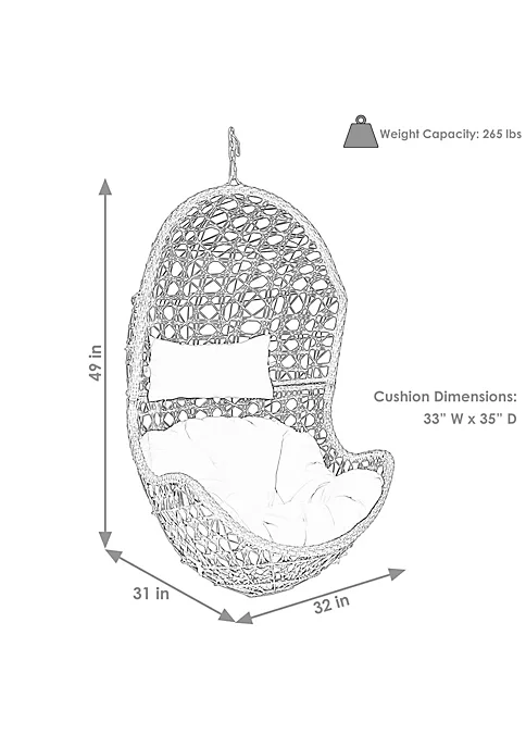 - COMFORTABLE SIZE: Egg shaped lounge chair measures 32 inches wide x 31 inches deep x 49 inches tall; weighs 27 pounds; Cushion seat size: 33 inches wide x 35 inches deep x 4 inches thick; Weight capacity: 265 pounds
