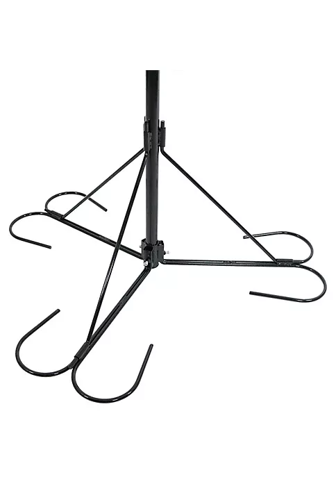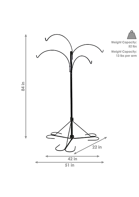 - HEAVY DUTY BUILD: Large weight capacity of 13 lbs per arm; Freestanding hanging hook system measures 84 inches tall x 51 inches wide, weighs 30 pounds; Main support pole: 1.5 inch diameter; Base dimensions: 22 inches long x 42 inches wide; Arms are 0.5 inch in diameter