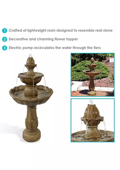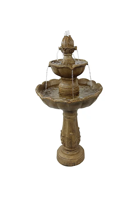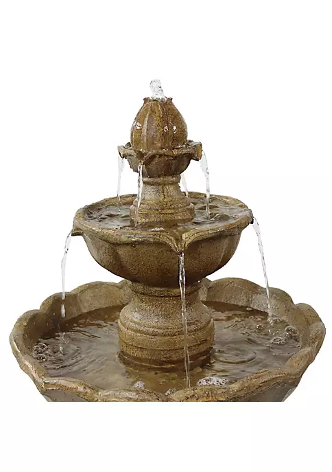 - ATTRACTIVE ADDITION TO YOUR SPACE: Make a statement on your front porch, landscape, balcony, and exterior space with this gorgeous and detailed tiered fountain. It measures 38 inches tall x 19 inch diameter and weighs 19 pounds, making it sturdy enough so it won’t tip over outside. It has a water capacity of 1.5 gallons.