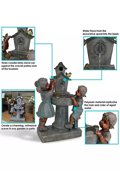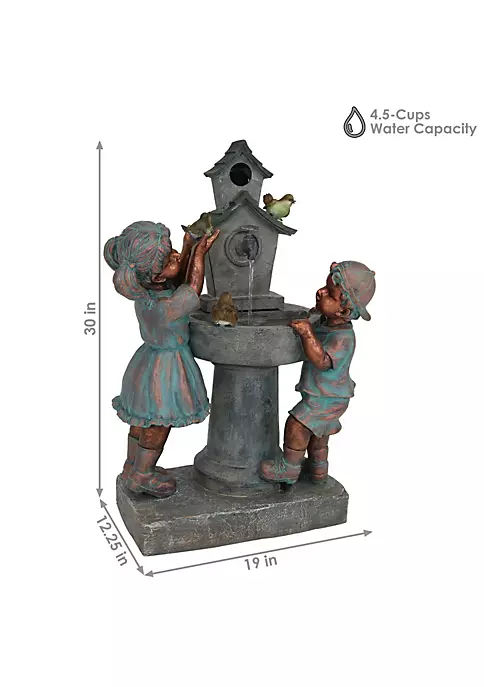 - WHIMSICAL OUTDOOR ACCENT: 19 inches wide x 12.25 inches deep x 30 inches tall; Weighs 26.6 pounds; 0.5 inch diameter hose; Large 6-foot long power cord; Water capacity of 4.5 cups