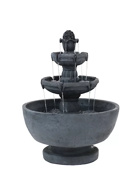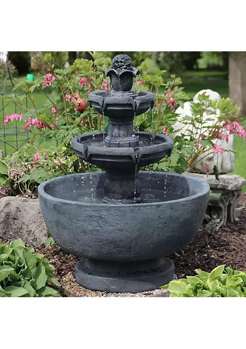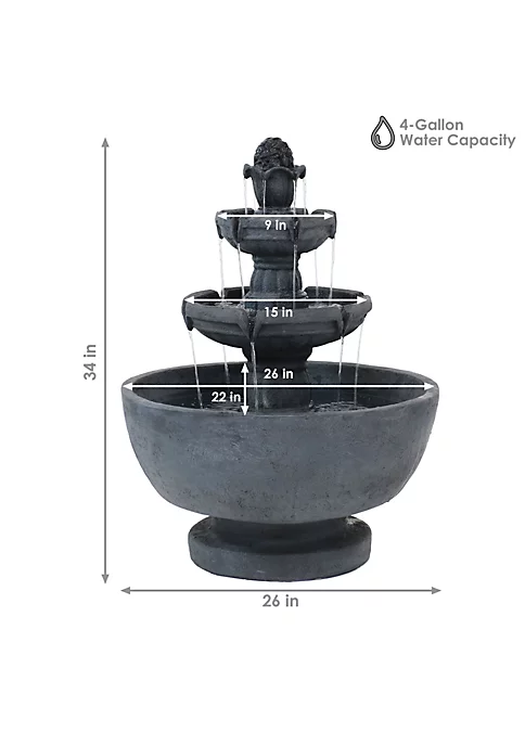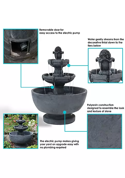 - ATTRACTIVE ADDITION TO YOUR LANDSCAPE: This classic & appealing outdoor fountain will add elegance and charm to your porch, deck, and exterior space; Measures 26 inches wide x 22 inches deep x 23 inches tall; Weighs 24 pounds making it lightweight to move around, but solid enough so it won’t tip over