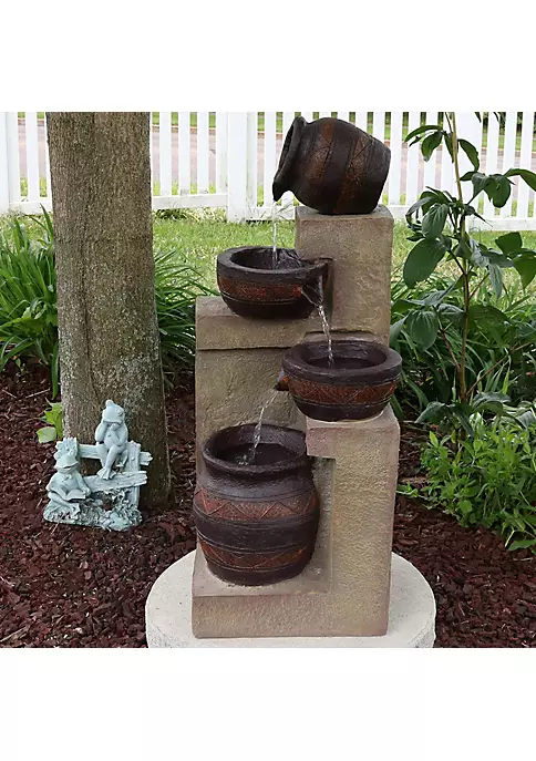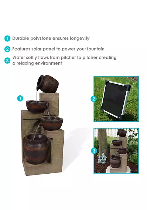 - OVERALL DIMENSIONS: 10 inches long x 12 inches wide x 30 inches tall; weighs 19 pounds so it’s the perfect size for any outdoor space. This fountain has a water capacity of 2 gallons