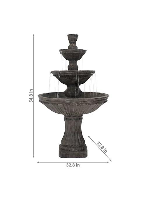 - ATTRACTIVE CENTERPIECE FOR YOUR SPACE: Make a statement on your front porch, deck, balcony, or landscape with this large outdoor fountain; Measures 55 inches tall x 33 inch diameter and weighs 58 pounds, making it sturdy so it won’t tip over outside