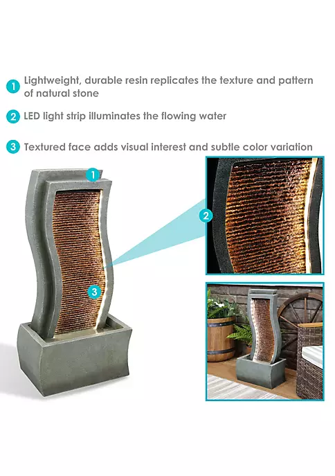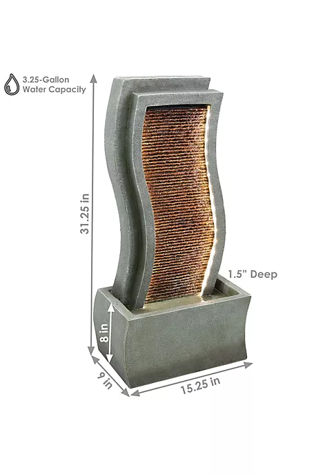 - ATTRACTIVE CENTERPIECE FOR ANY AREA: Measuring 15.25″ W x 9″ D x 31.25″ H and weighing 19.6 lbs overall, this outdoor waterfall fountain is the perfect size to place in a variety of locations. The base measures 15.25″ W x 9″ D x 8″ H, with a water capacity of 3.25 gallons.