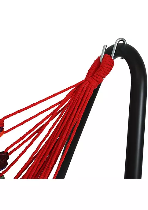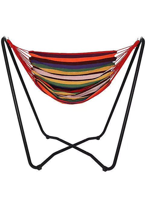 - SPACE SAVING SIZE: Overall chair with stand is 69.5″ W x 40″ D x 60.75″ H and weighs 31 lbs. Hammock chair is 42″ W x 58″ D with a weight capacity of 330 lbs.