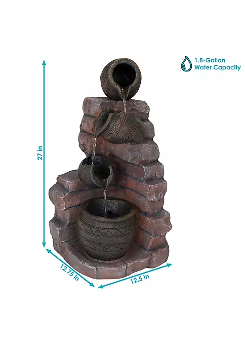 - RUSTIC ADDITION TO YOUR SPACE: Make a statement in your backyard, front porch, garden, and landscape with this gorgeous patio water feature. Measures 12.5″ length x 12.75″ width x 27″ height and weighs 17.6 pounds so it won’t tip over outside.