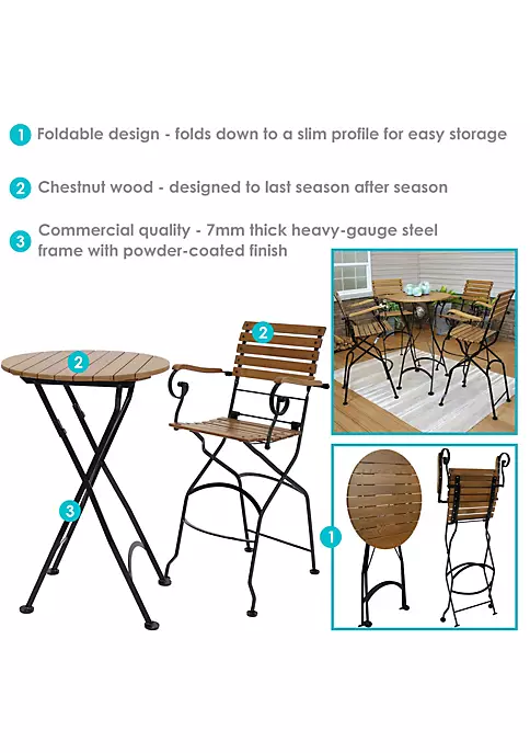 - PORTABLE, COMPACT FOLDING: Overall chair dimensions: 23.75 inches wide x 24 inches deep x 46.75 inches tall; Seat dimensions: 17.75 inches wide x 16.25 inches deep x 30.25 inches tall; Arms: 1.5 inches wide x 16.5 inches deep x 40 inches tall; 23.6 pounds per chair; Weight capacity: 400 pounds per chair; Overall table dimensions: 28 inches Diameter x 42 inches; Weighs 34 pounds; Weight capacity: 400 pounds