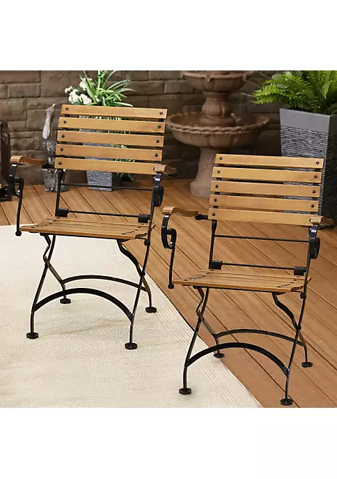 - PORTABLE, COMPACT FOLDING BISTRO CHAIR: 23.75 inches wide x 23 inches deep x 33.5 inches tall; Seat dimensions: 17.75 inches wide x 16.25 inches deep x 18.5 inches tall; Arms: 1.5 inch wide x 16.25 inches deep x 28 inches tall; Back: 17.75 inches wide x 18 inches tall; Weighs 20.6 pounds per chair; Weight capacity: 400 pounds per chair