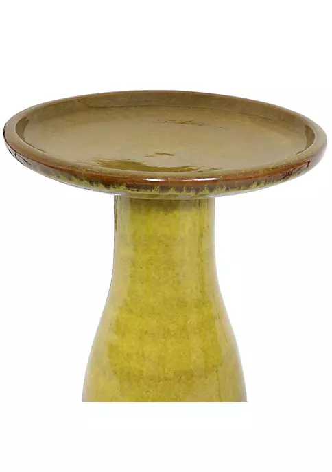 - OVERALL DIMENSIONS: This bird bath measures 18″ in diameter x 20.5″ H. The bowl measures 18″ in diameter x 3.75″ H with a 1.5″ bowl depth. The base measures 10.75″ in diameter (5.75″ diameter top) x 18.5″ H. The bird bath weighs 38.2 lbs and holds 1 gallon of water.