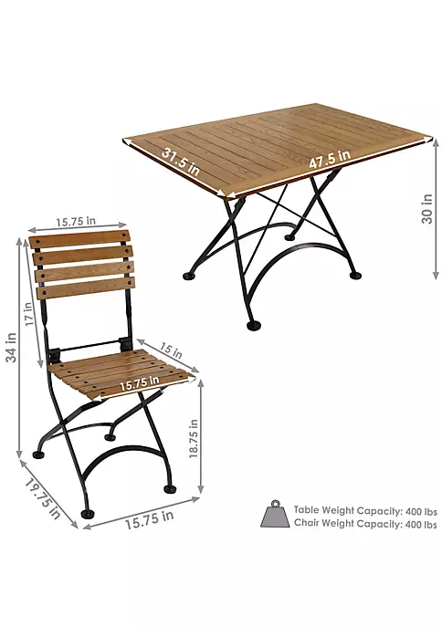- PERFECT SIZE: Patio Table Dimensions: 47.5 inches wide x 31.5 inches deep x 30 inches tall; Weighs 49 pounds; Weight capacity: 400 pounds; Patio Chair Dimensions: 15.75 inches wide x 19.75 inches deep x 34 inches tall; ; Seat Dimensions: 15.75 inches W x 15 inches D x 18.75 inches tall; Back: 15.75 inches W x 17 inches H; Weighs 15.8 pounds per chair; Weight capacity: 400 pounds per chair