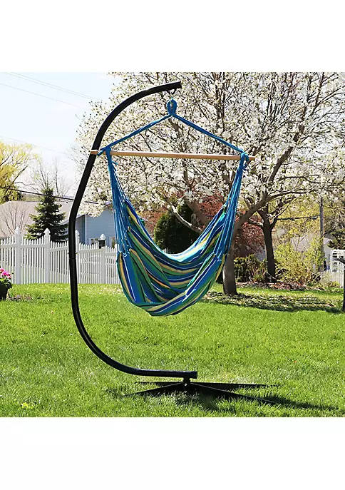 - DIMENSIONS: Hammock chair measures 60 inches long x 44 inches wide; weighs 4 pounds; C-stand measures 84 inches tall x 32 inches deep x 52 inches wide, weighs 55 pounds; Weight capacity of 300 pounds, so it can easily hold one adult